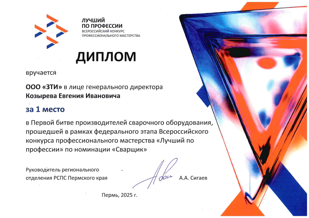 ZTI LLC is actively investing in the future by equipping educational institutions, colleges, professional competitions and championships with its welding equipment
